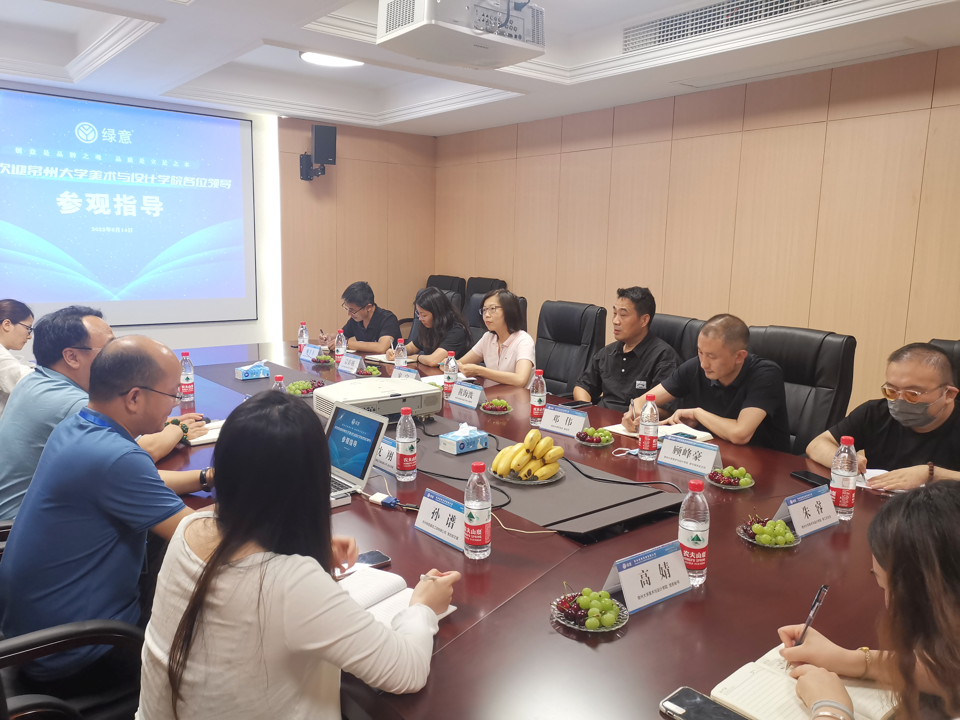 在座谈会上,公司董事长蒋连忠对安宁一行的到访表示欢迎,并介绍了企业发展历程、产业链布局及发展愿景。副总经理沈翔详细介绍了公司的基本情况和涉及的业务领域。安宁对绿意传媒有限公司的支持表示感谢,并简要介绍了美术与设计学院的发展概况、学科专业建设和人才培养情况,希望以此次交流为契机,双方就毕业生就业与人才招聘、艺术类人才校企联合培养、产学研合作、大学生暑期专业实习与实践等方面开展深度合作;黄海波就学院在产学研方面的情况作了详细介绍。他表示,学院近几年发展迅速,综合实力持续提升,希望通过进一步探索学院与企业的合作潜力与空间,实现资源共享、互惠共赢,助力地方经济发展。