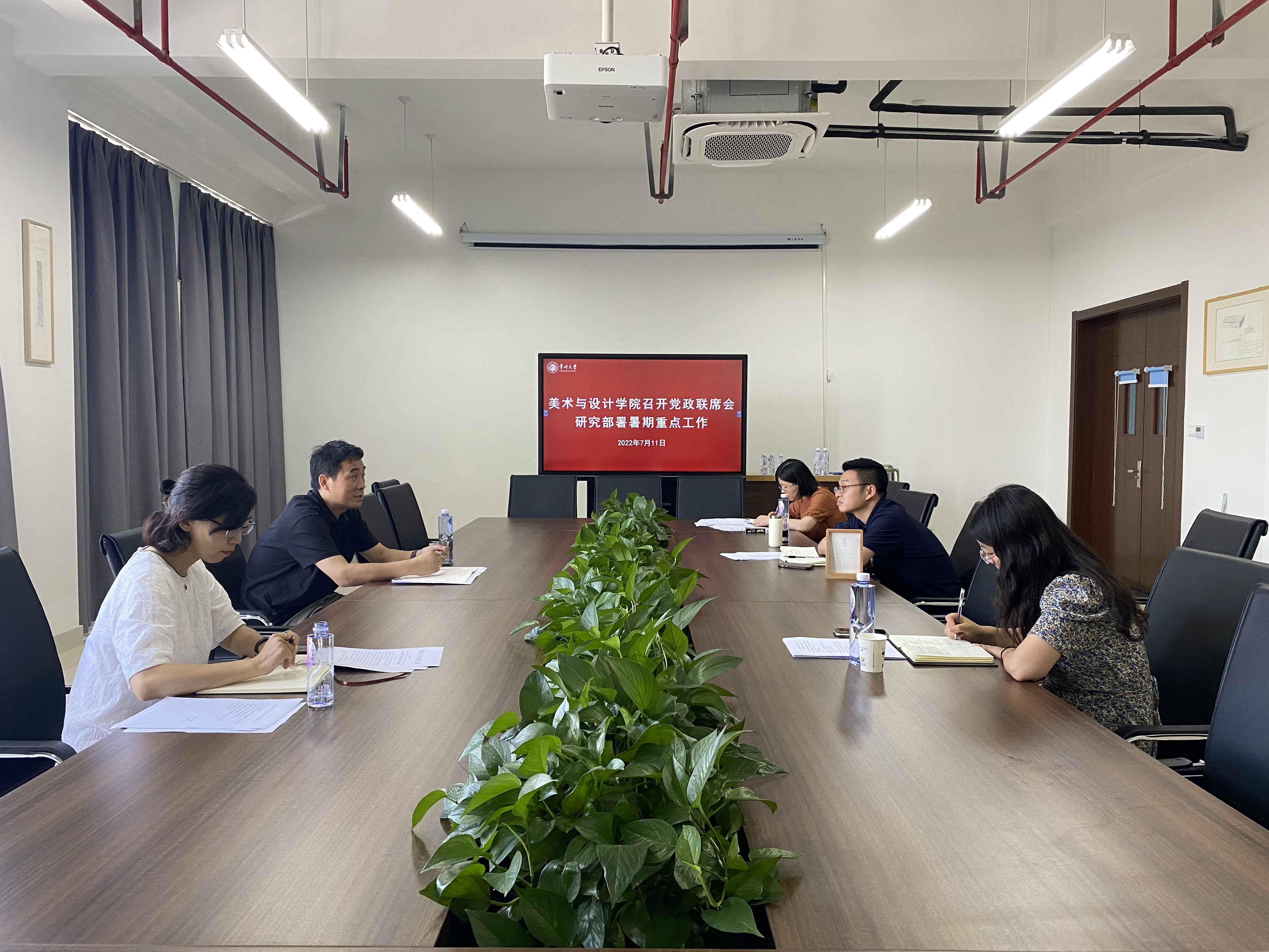 7月11日下午,美术与设计学院召开党政联席会研究部署2022年暑期重点工作,会议由学院党委书记安宁主持。