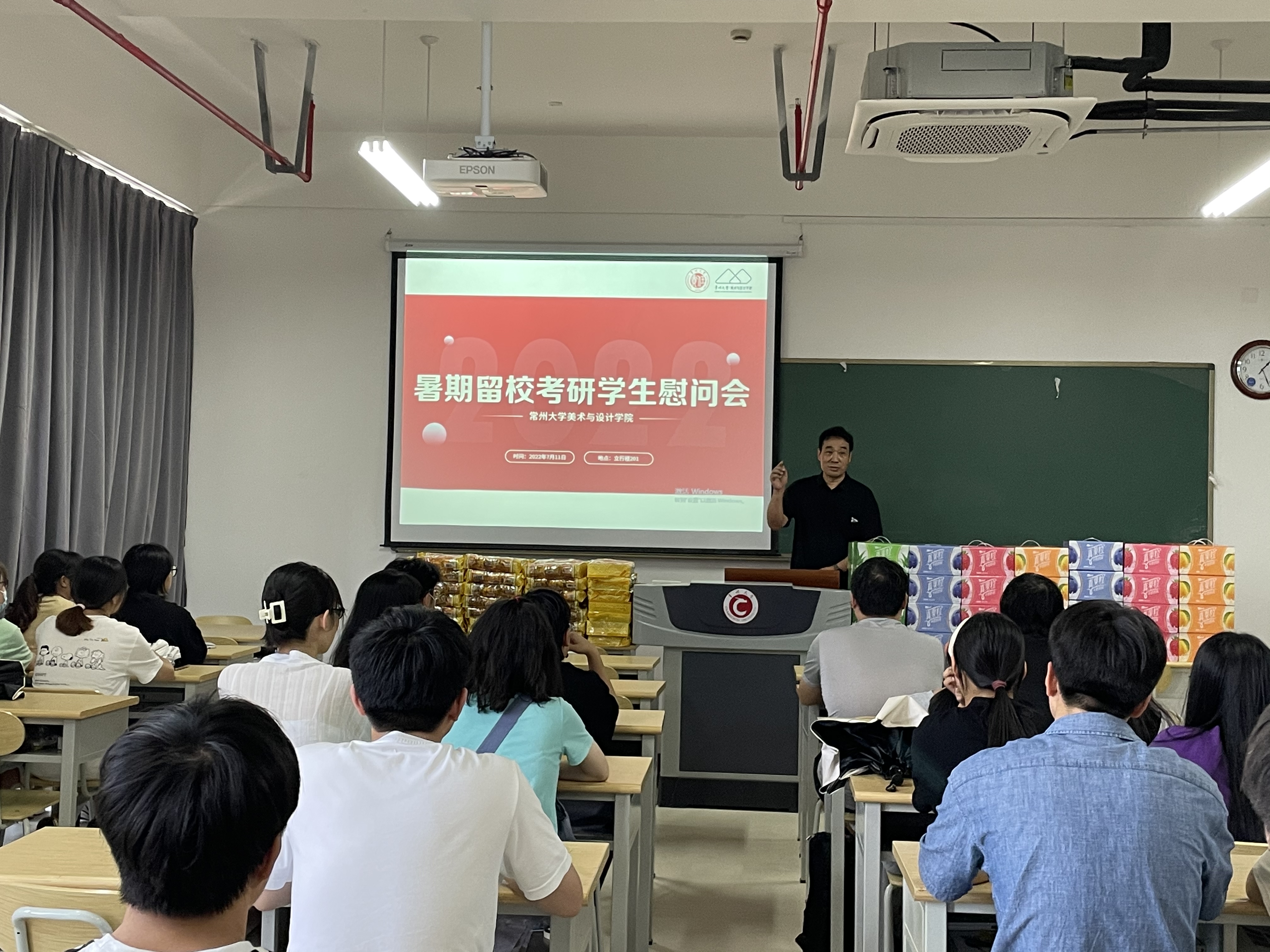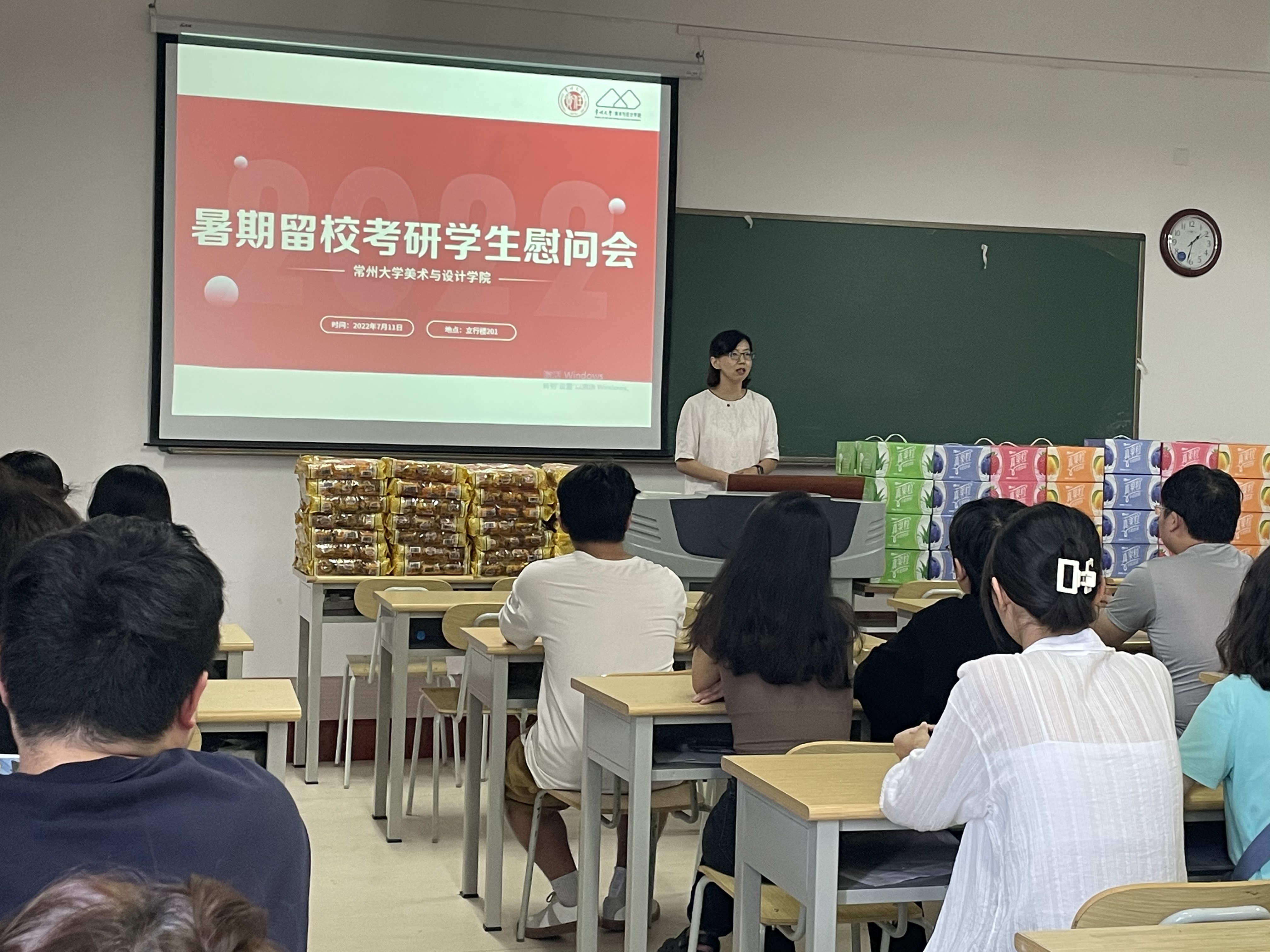 盛夏炎炎,骄阳似火。暑期是备战考研的关键阶段,为坚定考研学生的信念,增强考研信心,缓解备考压力,7月11日下午,美术与设计学院在立行楼201开展暑期留校考研学生慰问会。学院党委书记安宁、院长黄海波、党委副书记宗彩娥、部分辅导员以及全体留校考研学生参加会议,会议由宗彩娥主持。