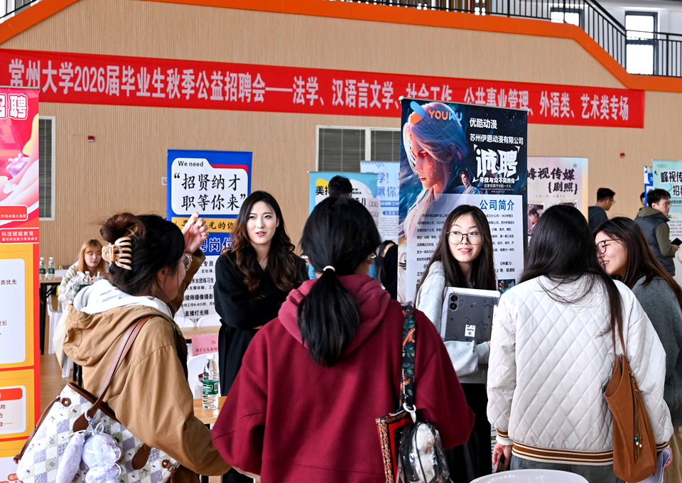 11月12日,美术与设计学院联合多学院在西太湖校区体育馆二楼隆重举办2026届毕业生秋季公益招聘会。本次招聘会邀请96家用人单位共带来400余个招聘岗位参招,其中,美术、艺术设计类参招单位近20家,提供岗位60余个,对口涵盖学院全部专业,精准匹配学生求职意向,为我院2026届毕业生带来了优质的实习机会和丰富的职业选项,体育馆内人头攒动、气氛热烈,学院近200名各专业学生参加招聘活动,现场投递简历、意向登记300余人次,近百人达成初步就业意向。
