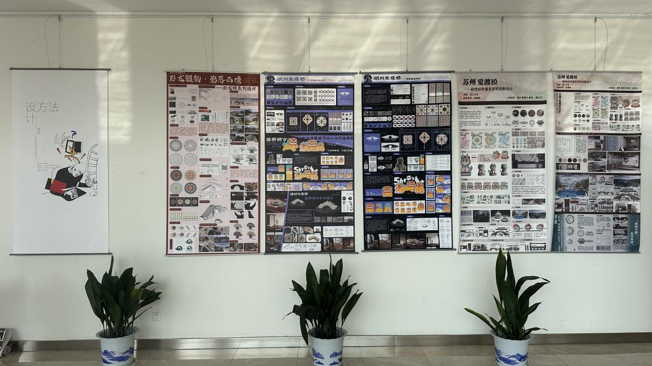 12月29日,“江南水乡古桥装饰图案谱系研究”课程成果展在立行楼南门大厅正式拉开帷幕。本次展览将持续至2026年1月9日,集中展示了我院2025级艺术设计专业研究生在《设计方法》课程中完成的24组专题设计成果。