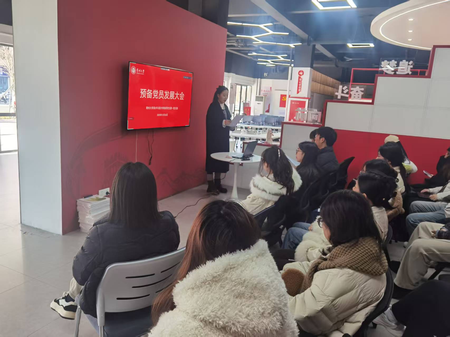 12月26日下午,美术与设计学院研究生第一党支部在博雅居“一站式”社区召开全体党员大会。会议由丁明轩同志主持,支部全体党员参加。