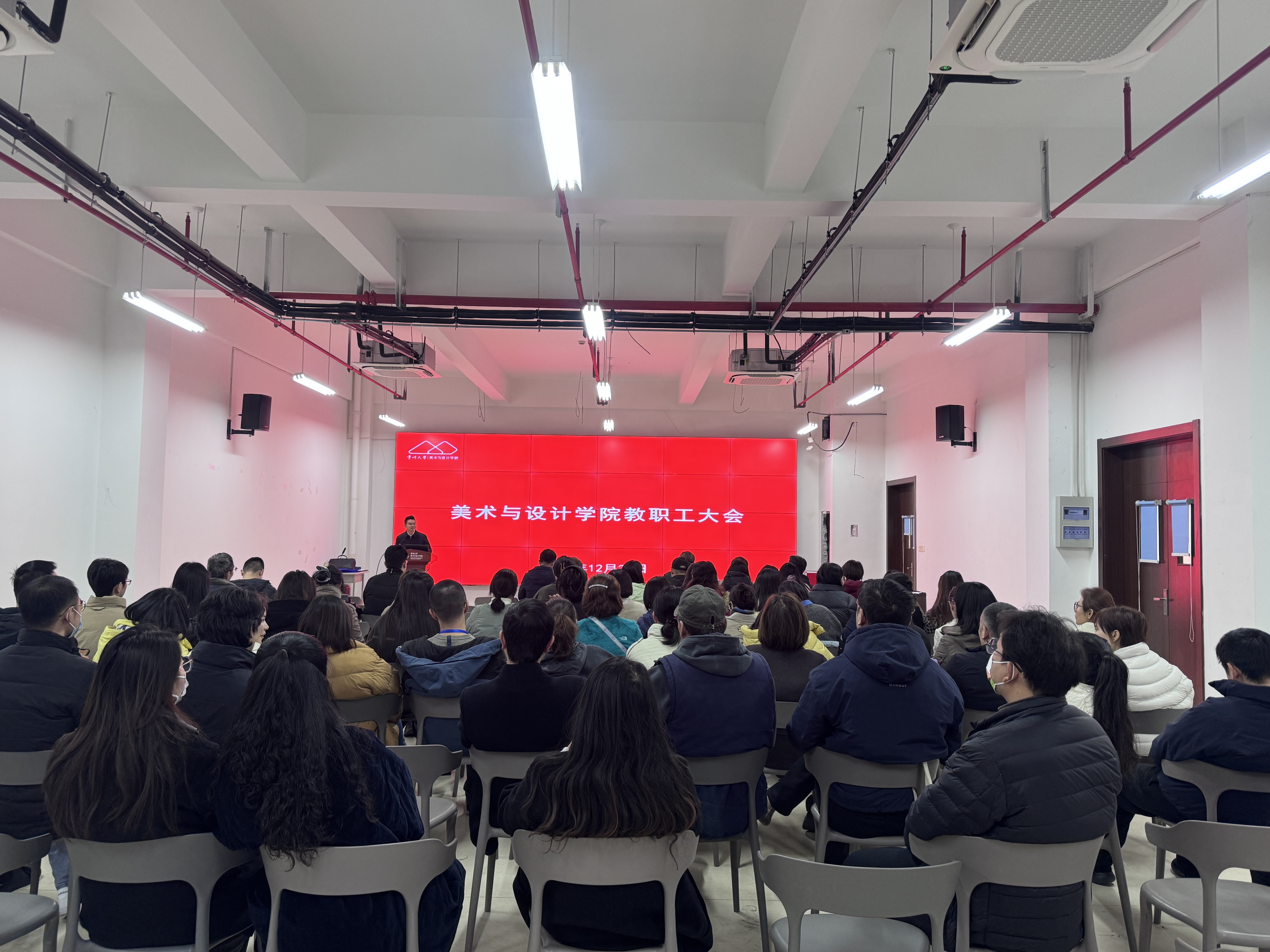 12月26日,美术与设计学院2025年度全体教职工大会暨工会会员大会在学院会议室顺利召开。学院党委书记吴荷平、副院长(主持工作)贾韬及全体教职工参加大会。会议由学院党委副书记林方毅主持。
