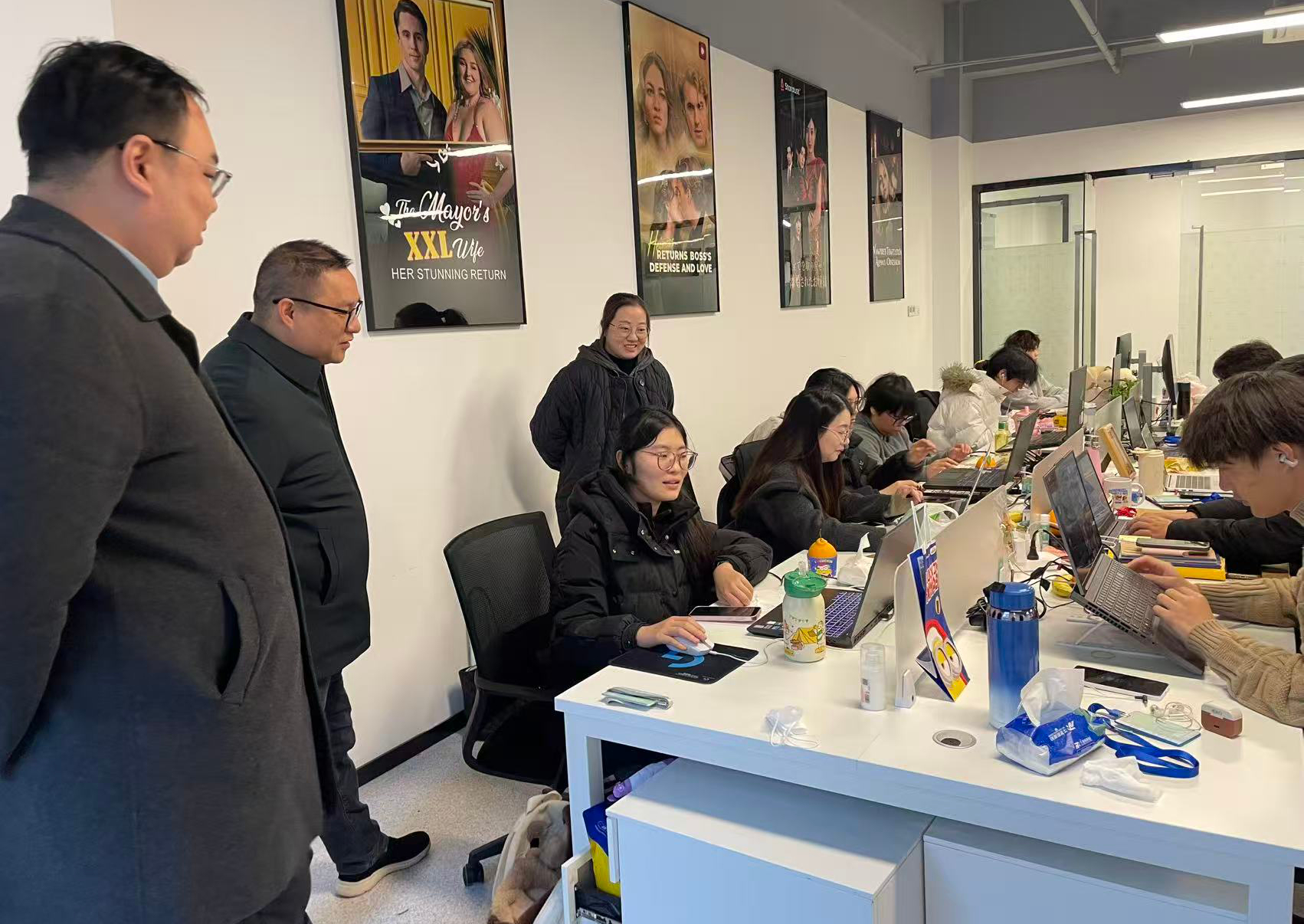 交流会后,学院一行陆续走访园区入驻企业,关心慰问寒假期间仍在剧汇(常州)影视科技有限公司开展实习的学院数媒专业学生。后续,学院将持续联动园区企业,进一步开展访企拓岗特色行动,为我院学生高质量就业提供更多更好艺术设计类岗位。