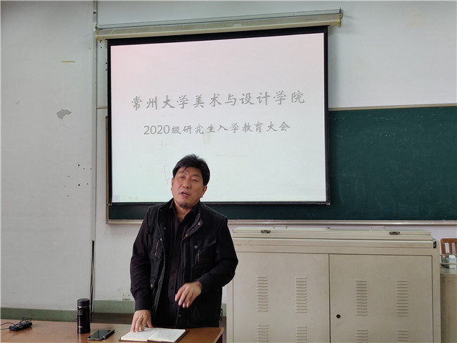 学院领导及老师首先对20级研究生表示热烈欢迎。黄海波院长向同学们介绍了美术与设计学院研究生阶段的四个基本的专业方向,并对各个专业方向的教师情况进行了详细的介绍,同时就选择导师的问题与同学们进行互动沟通。李宪锋院长就研究生国家培养政策、学校与学院研究生计划以及导师选择等问题向新生做了详细的介绍,强调了非全日制教育的重要性,通过学生实例对今后不同的发展道路进行了阐释。并且希望各位同学发扬美院院训精神,勤于思考、敢于创新,不断提高自身艺术修养。