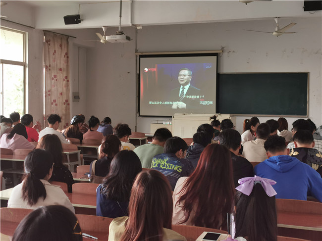 之后李磊对20级研究生新生做爱国主义的思想教育指导,与新生共同观看《这就是中国》视频演讲片,通过视频,与新生一起探讨当下紧张的国际形势,并与同学们互相交流新时代背景下青年应以什么样的态度表达自己的爱国主义热情。