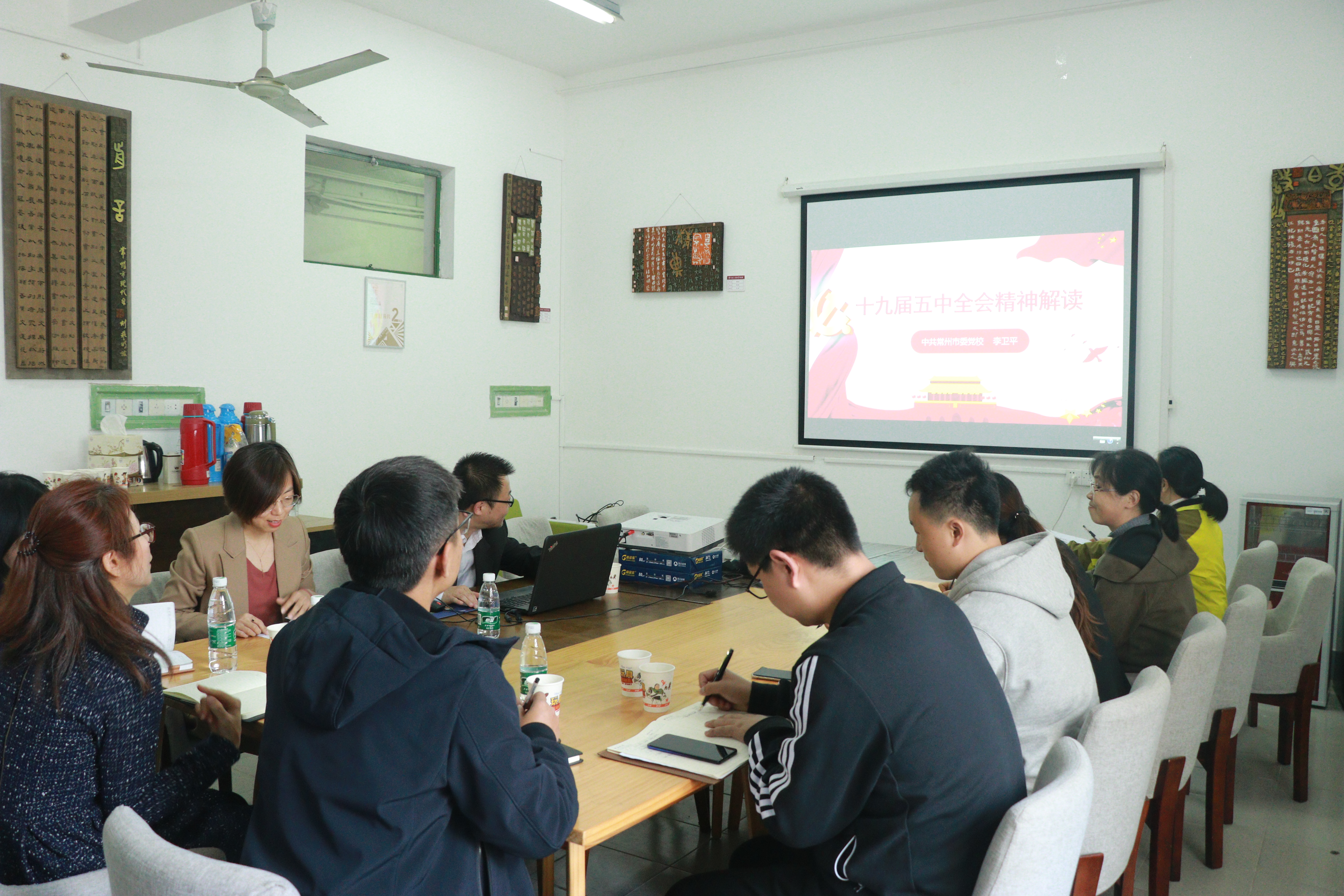 11月16日下午,美术与设计学院在艺术1号楼318会议室召开党委理论学习中心组(扩大)学习会,中共常州市委党校经济管理教研室主任李卫平以《谱写“十四五”新篇章 领航现代化新征程——学习贯彻党的十九届五中全会精神》为题,为我院师生党员宣讲党的十九届五中全会精神,院党委委员,各党支部书记、师生党员代表聆听了学习会。会议由学院党委书记安宁主持。