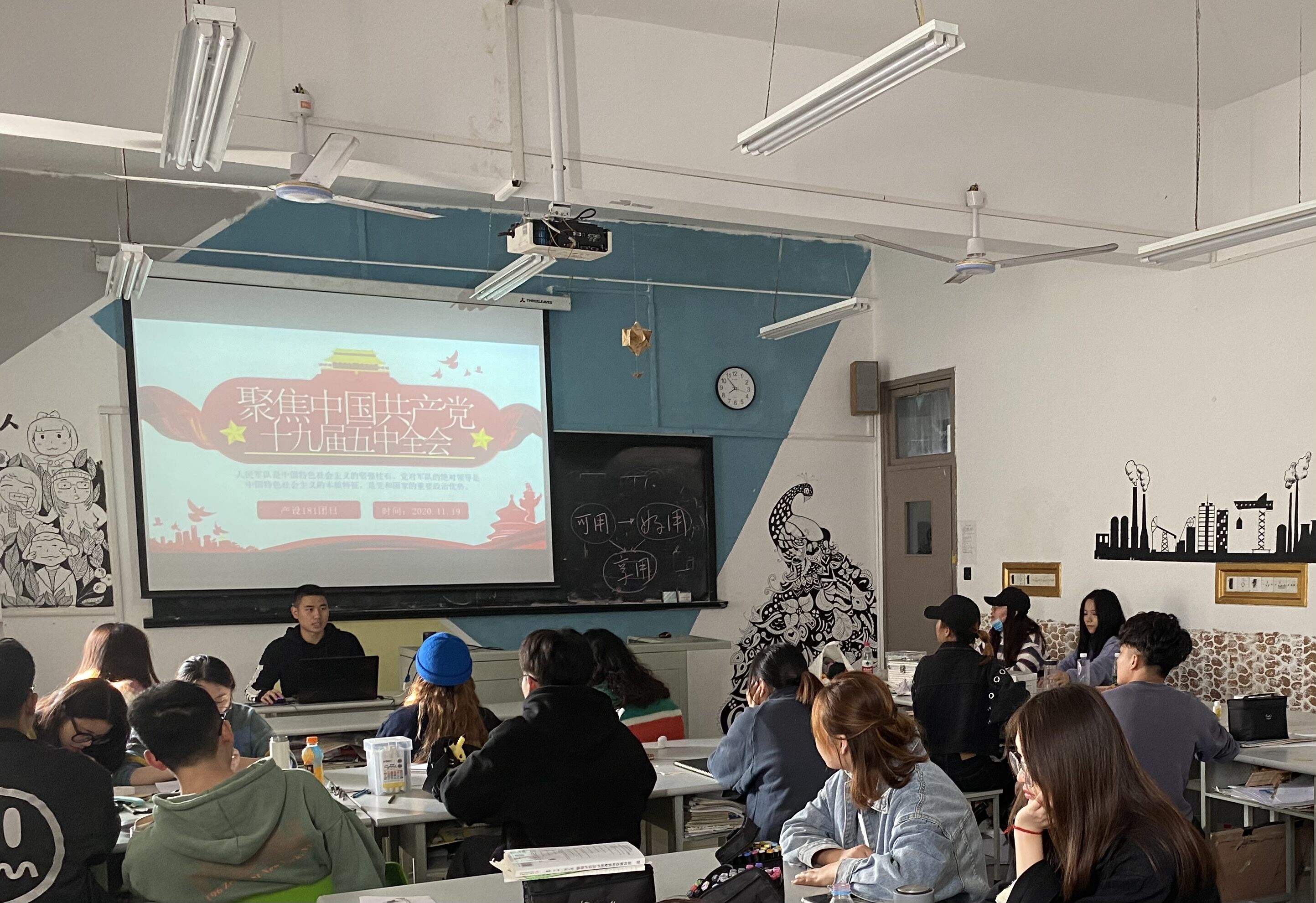 各团支部通过召开主题班会、视频收看、线上讨论等方式,由各团支部青年学习社成员领学,通过PPT、视频等方式,介绍党的十九届五中全会的会议内容以及重要意义,各支部同学畅所欲言,将十九届五中全会精神融入日常的学习生活,立足本职,切实做到思想自觉和行动自觉。景观171班团支部,更是利用专业特色,制作了十九届五中全会宣传册,并在街头进行分发,让更多的人能了解国家的发展和规划,展现我院学子积极向上的精神面貌。