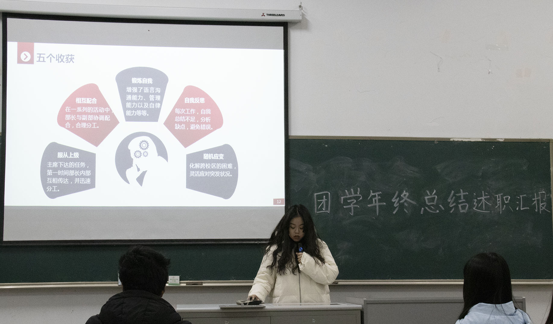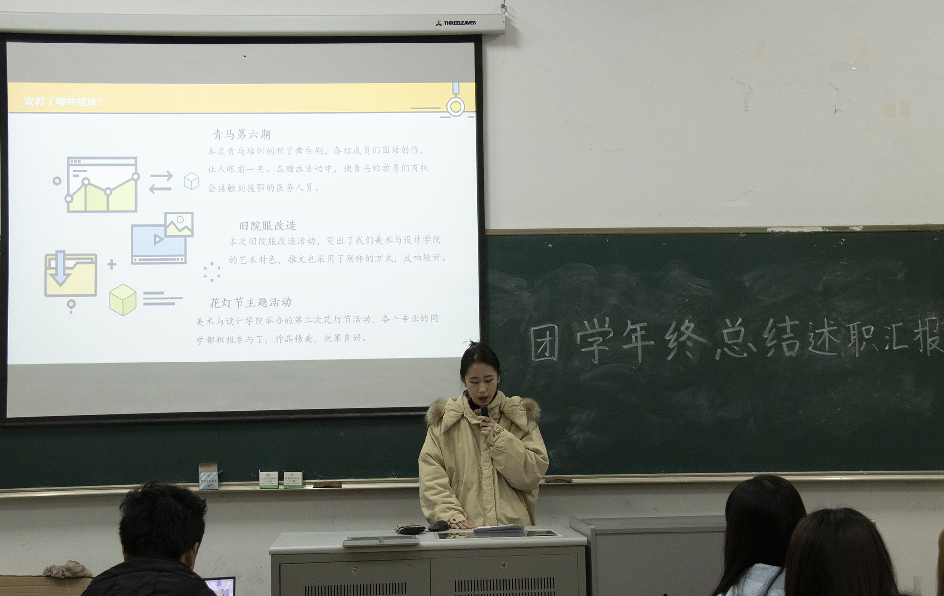 为更好的推动美术与设计学院团学工作高质量发展,1月12日晚,美术与设计学院在白云校区南区s109召开团学骨干述职答辩大会,会议由院团委书记李磊主持,院团学骨干参加。