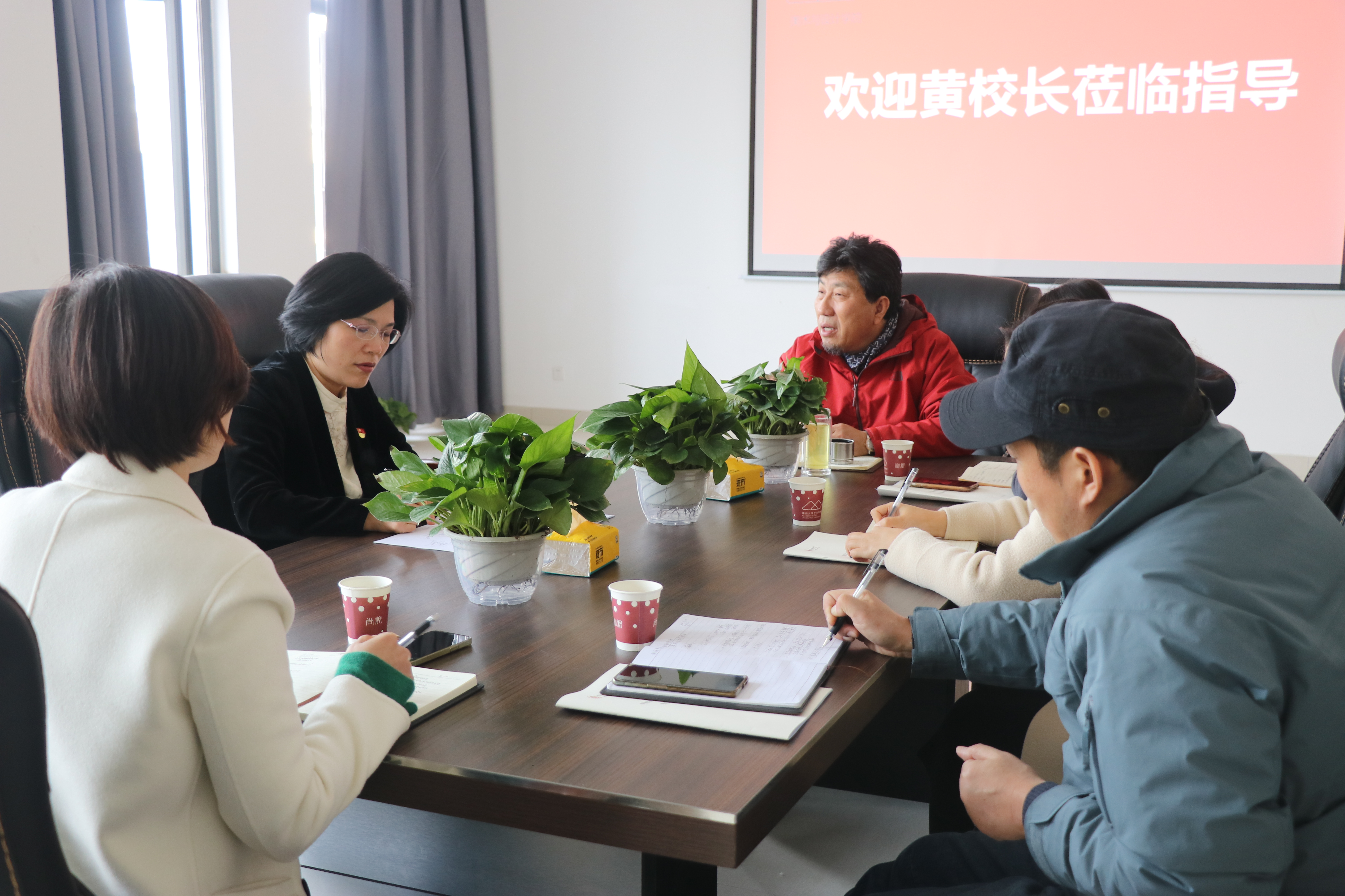 黄海燕在听取汇报后,充分肯定了美术与设计学院新学期的工作思路与计划,她希望美术与设计学院在今后工作中,继续保持良好的发展势头,要进一步发挥学院服务学校、服务地方、服务社会的作用,践行传播“美”的文化使命;要进一步加强专业建设,做好文化宣传、立足地方,引导师生主动参与地方文化建设,参与承办地方文化活动,打造学院品牌特色;要进一步加强学科建设,打造专业建设平台,提升学科排名,以优异的成绩向建党100周年献礼。