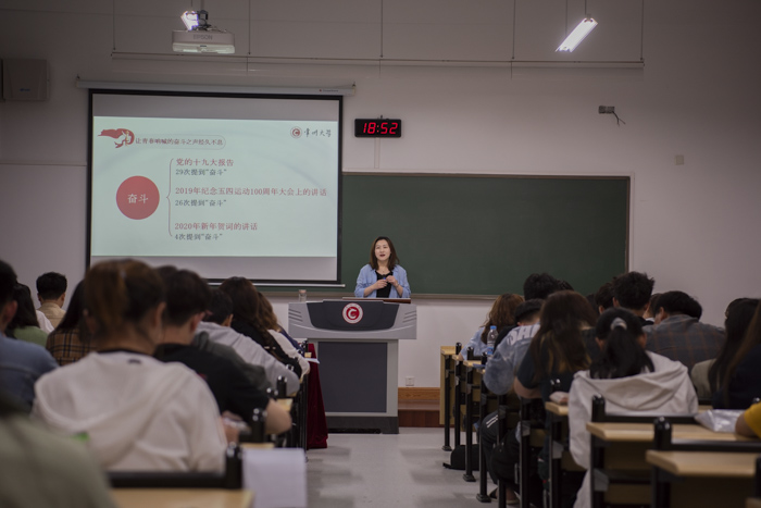 开班仪式结束后,第七期青马学院第一次课程开讲。校团委副书记曾晨做了主题为《让青春呐喊的奋斗之声经久不息》的报告。中国共产党党史是鲜活的奋斗史,课上,曾晨老师从为谁而奋斗、奋斗精神来源于哪里、怎样去奋斗三个方面出发,结合她个人经历,讲解了实现中华民族伟大复兴是近代以来中华民族最伟大的梦想,也是中国共产党的崇高历史使命。我们比历史上任何时期都更接近,更有信心和能力实现中华民族伟大复兴的目标,并用引用了很多名言,告诉同学们要为民族复兴而奋斗。