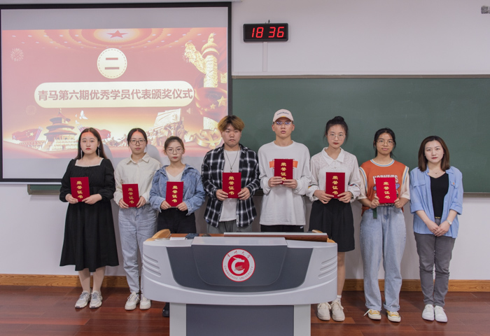 开班仪式在全体成员奏唱共产主义青年团团歌中拉开序幕。曾晨和朱睿分别为第六期青马优秀小组、优秀学员颁奖。视觉191班郭慧作为第六期青马优秀学员代表进行发言,她分享了在青马学院学习的心得体会,希望新一期的青马学员们能够用先进的理论知识武装自己,在学习中成长感悟,在实践中修炼提升。室内202班梅璎妮作为新成员代表发言,她表达了参与青马学院的重要意义,希望能够在此次培训中收获满满。