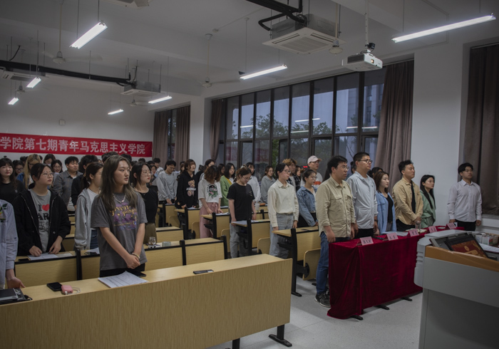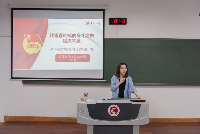 为了更好的帮助学院学生解放思想、坚定信念、提升素质、活跃校园文化,美术与设计学院团委于5月11日晚6:30在西太湖校区立德楼X105举行第七期青年马克思主义学院开班仪式暨第一次授课。邀请校团委副书记曾晨为第七期学员进行授课,院学工办主任朱睿、团委书记李磊,20级辅导员郭文剑以及全体第七期青马学员出席参加开班仪式。