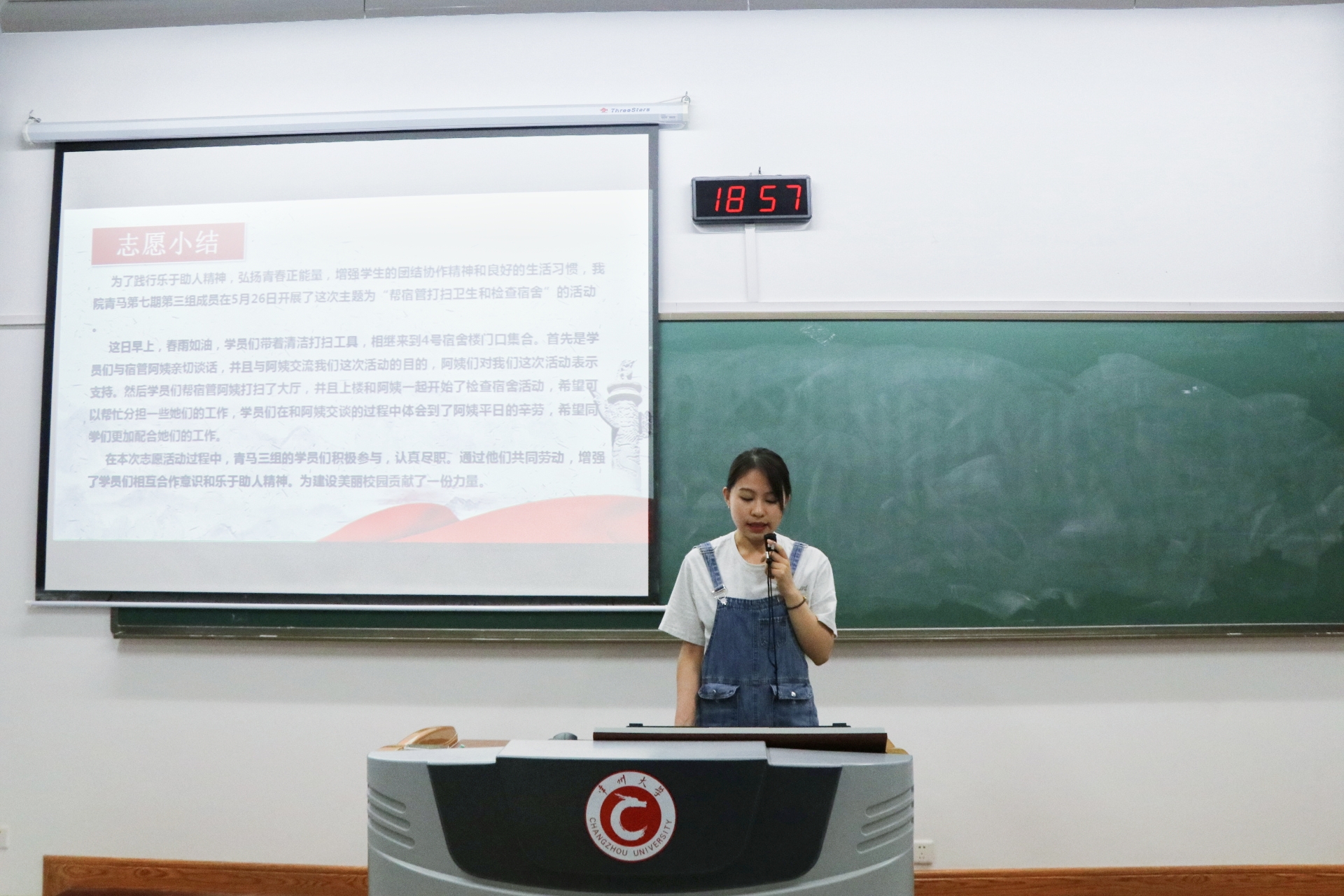会议伊始,各小组依次进行ppt汇报展示,青马学员结合参与青马培训以来的所思所想以及活动期间的个人实践收获,分享了自己在青马班的学习感受与心得体悟。此后,各组播放了小组成员合作完成的庆祝建党100周年视频,在制作、录制、视频剪辑过程中,加深党的发展过程中风雨兼程的印象。