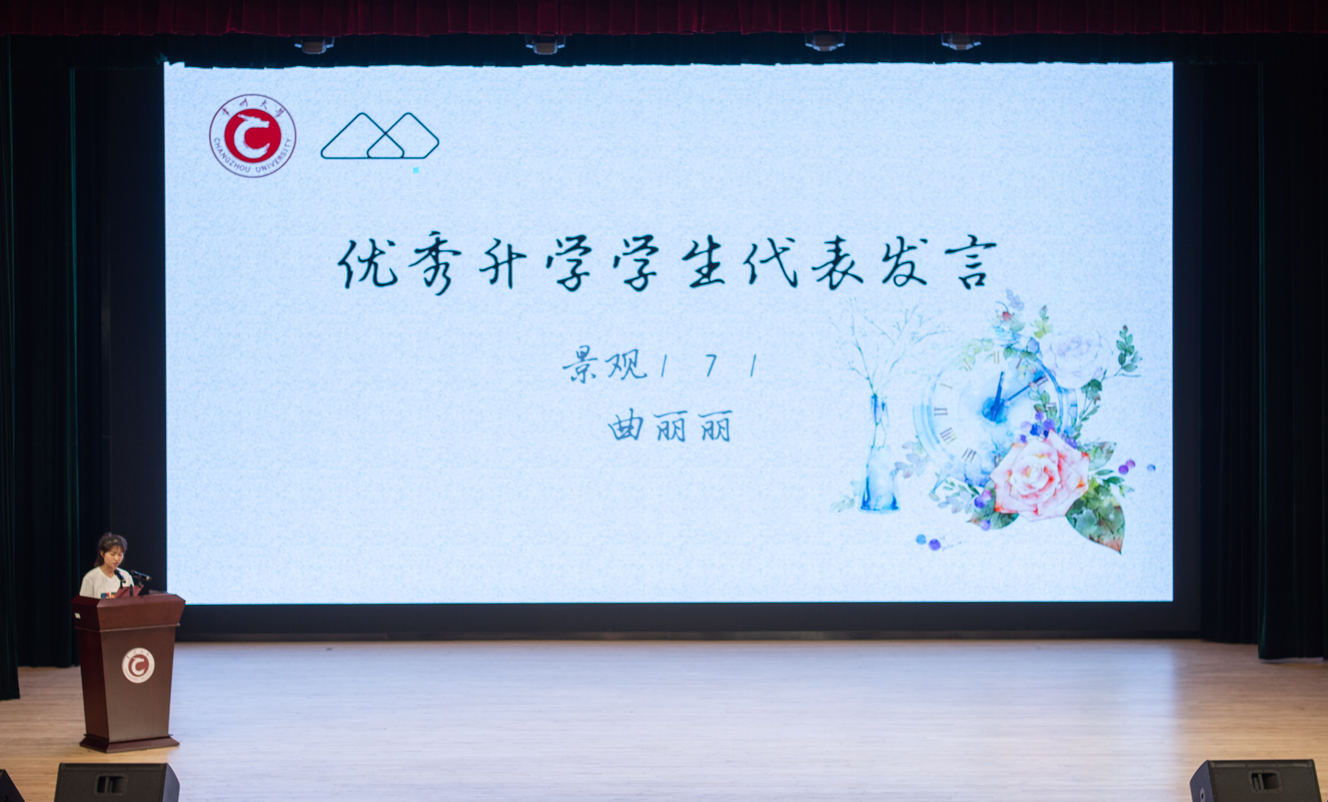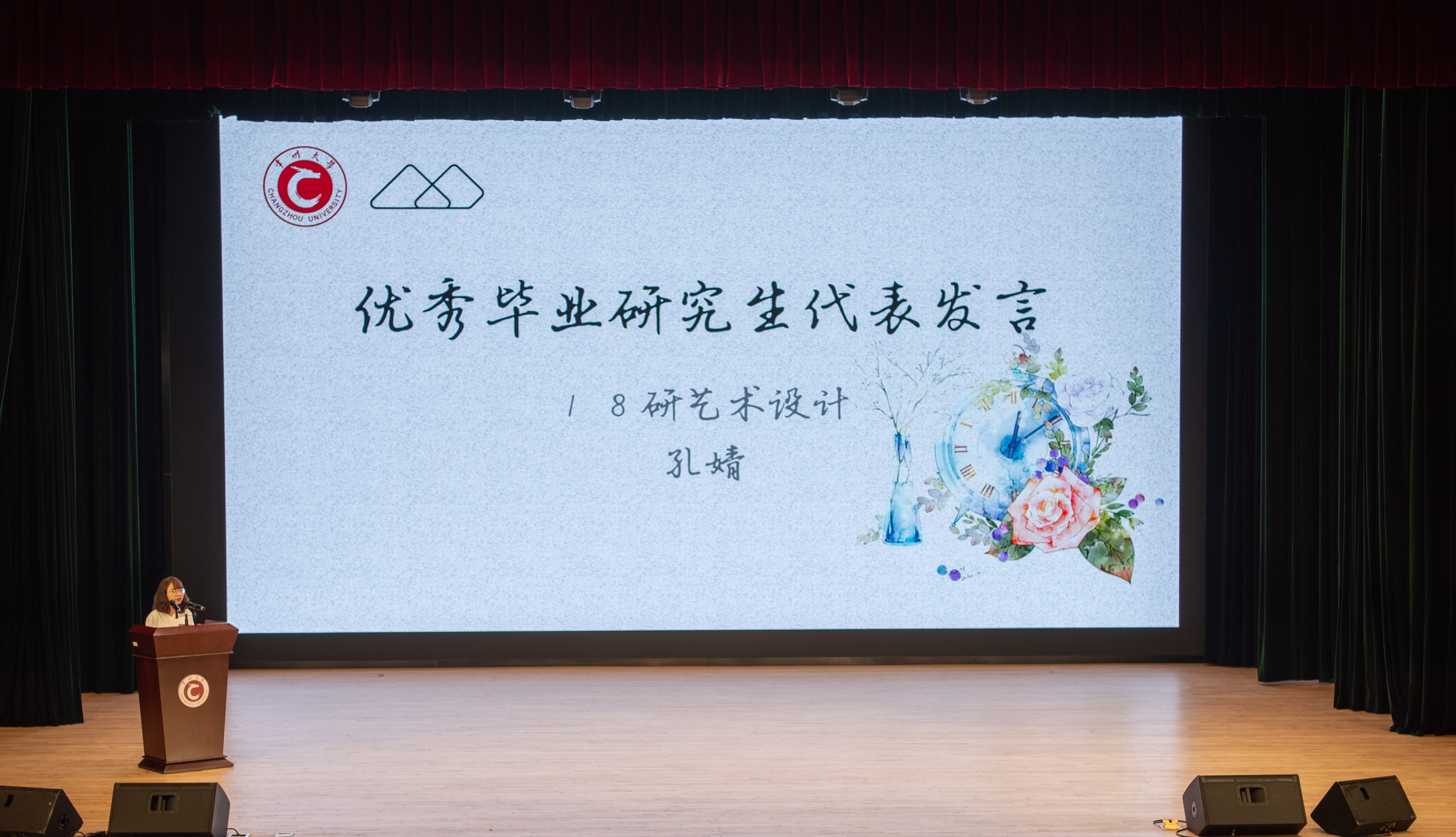 18研艺术设计孔婧同学作为优秀研究生毕业生代表发言,视觉171班张梦同学作为优秀本科毕业生代表发言,景观171班曲丽丽作为优秀升学代表发言,作为在白云校区生活了几年的2021届,他们表达了对母校几年来的培养的感恩,以及对于即将开启的新征程的憧憬。