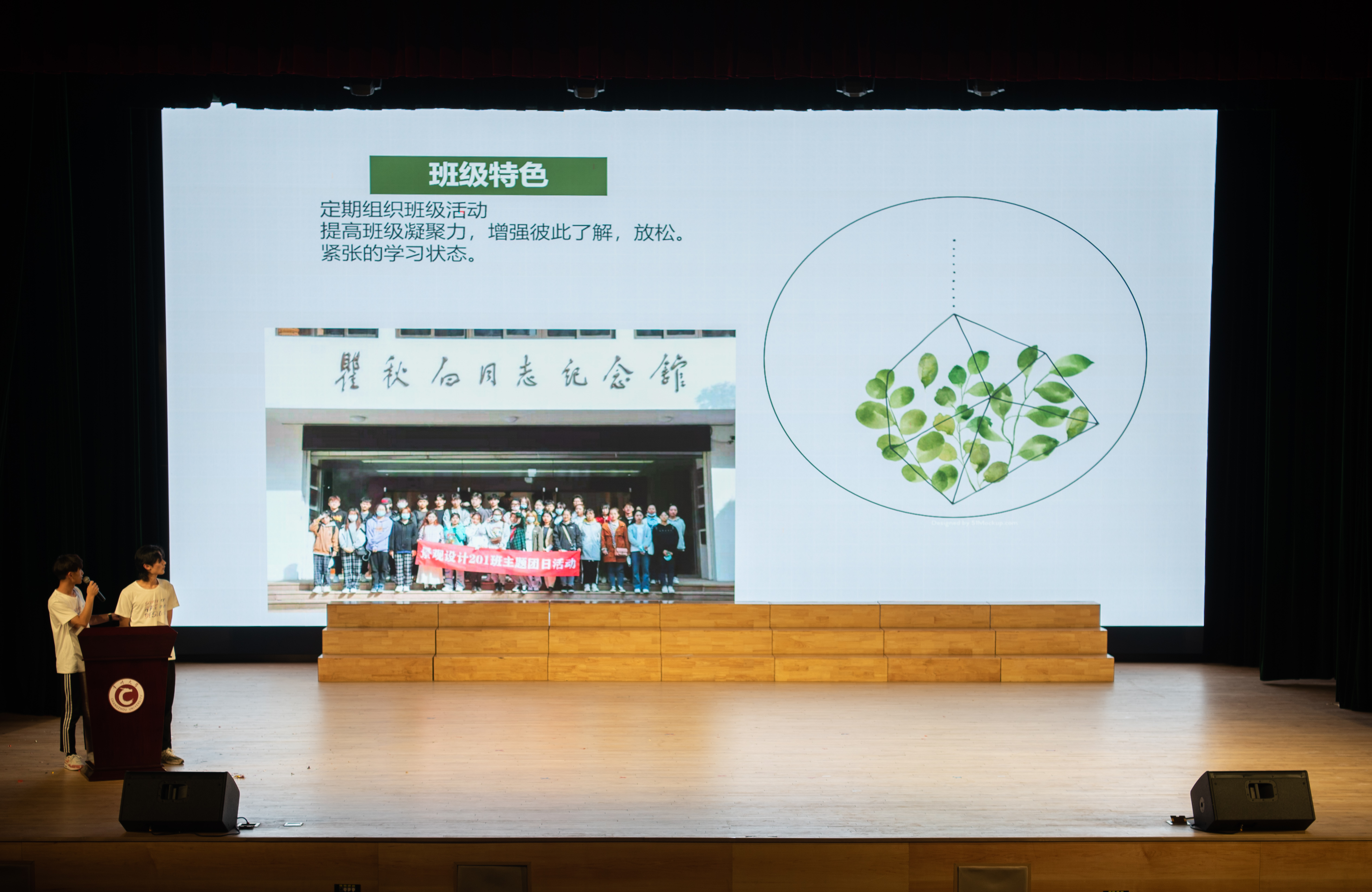 各参赛班级集思广益,按照活动主题内容精心准备制作了ppt课件,向在场师生汇报了入校以来的学习、生活,以及班级开展的丰富多彩的文体活动。一幅幅生动的画面,体现了同学之间团结、友爱的情谊,展现了大家朝气蓬勃的大学生活,图片与励志音乐的完美结合,给评委及观众留下了深刻的印象。