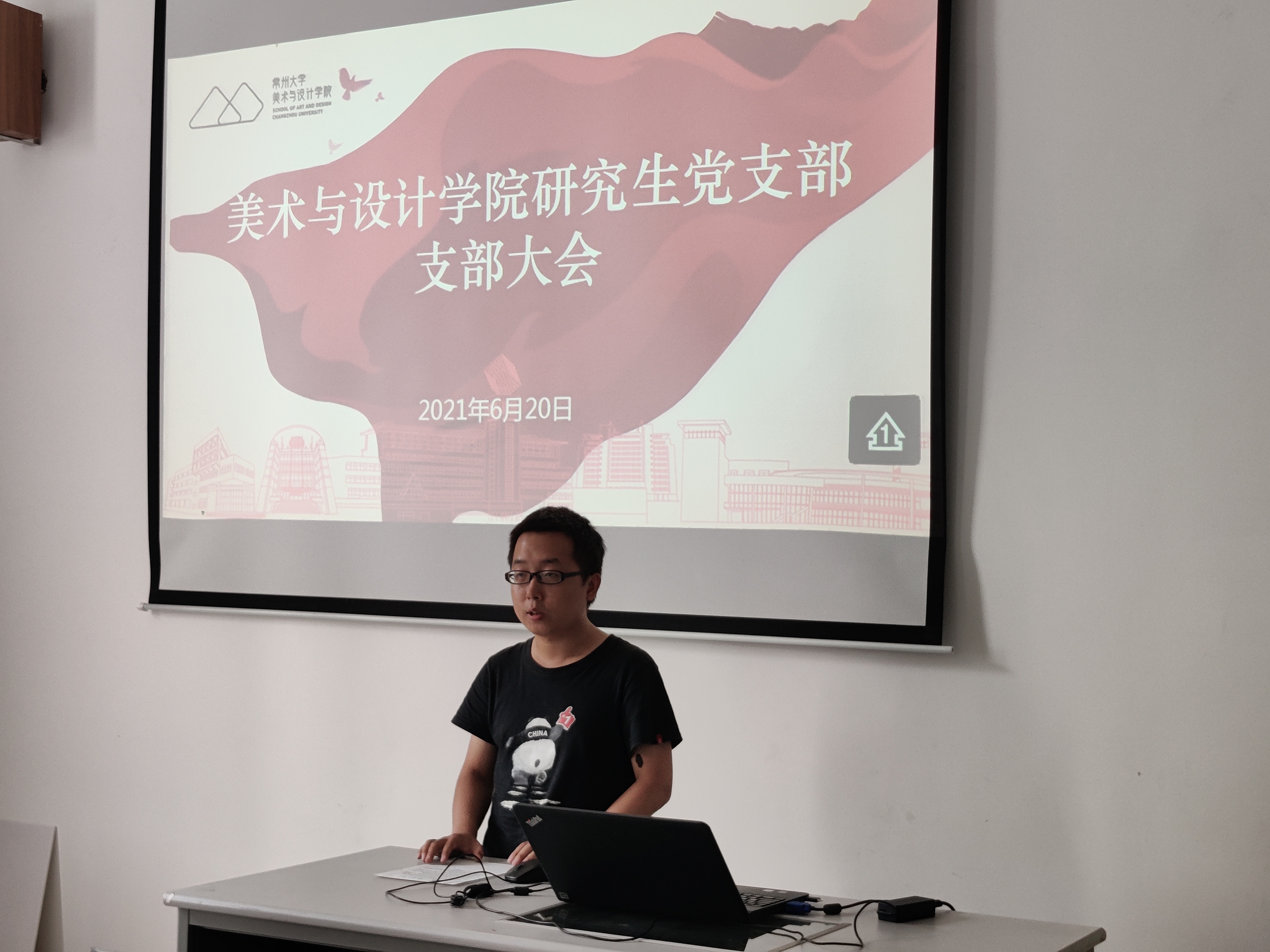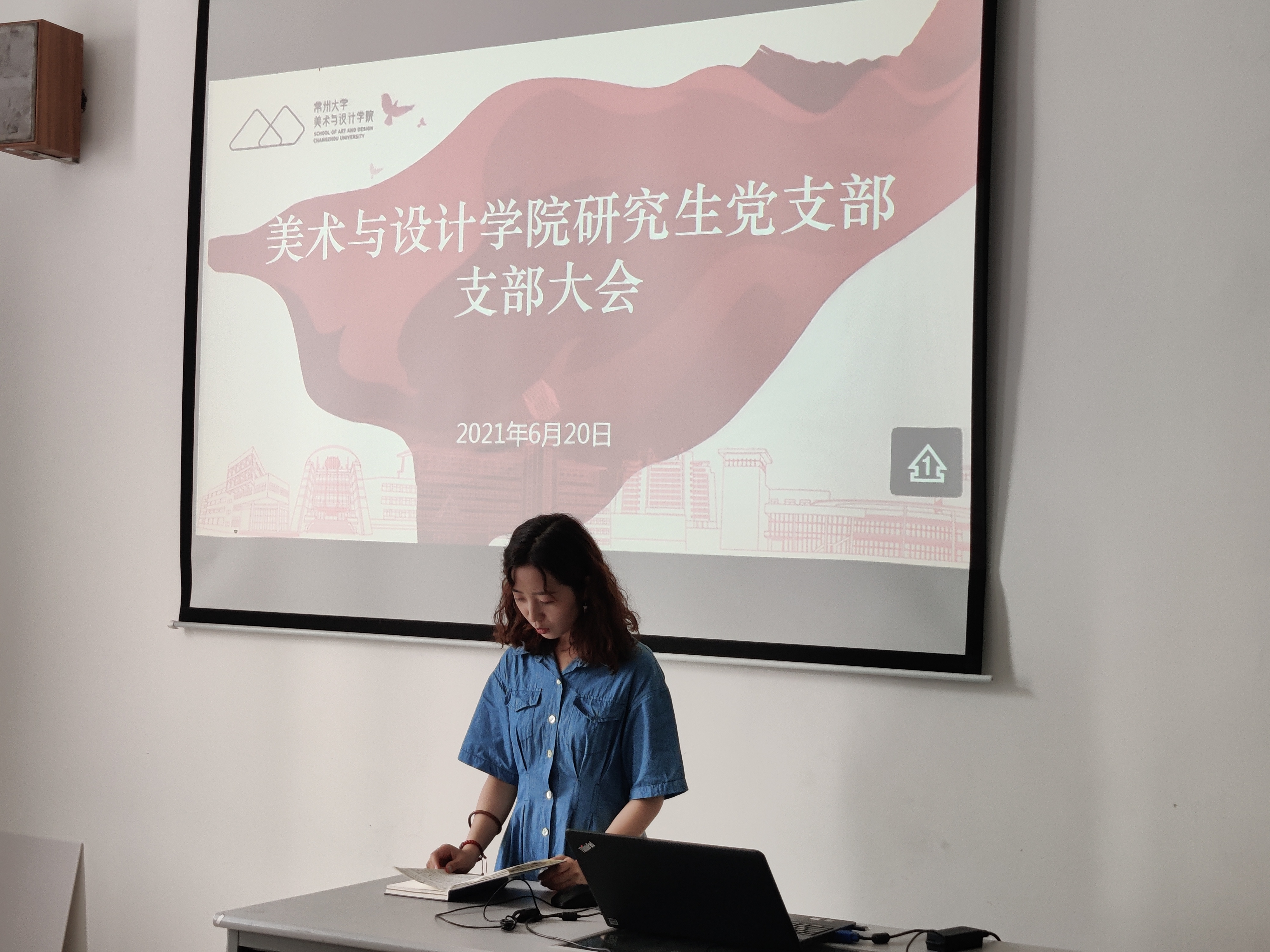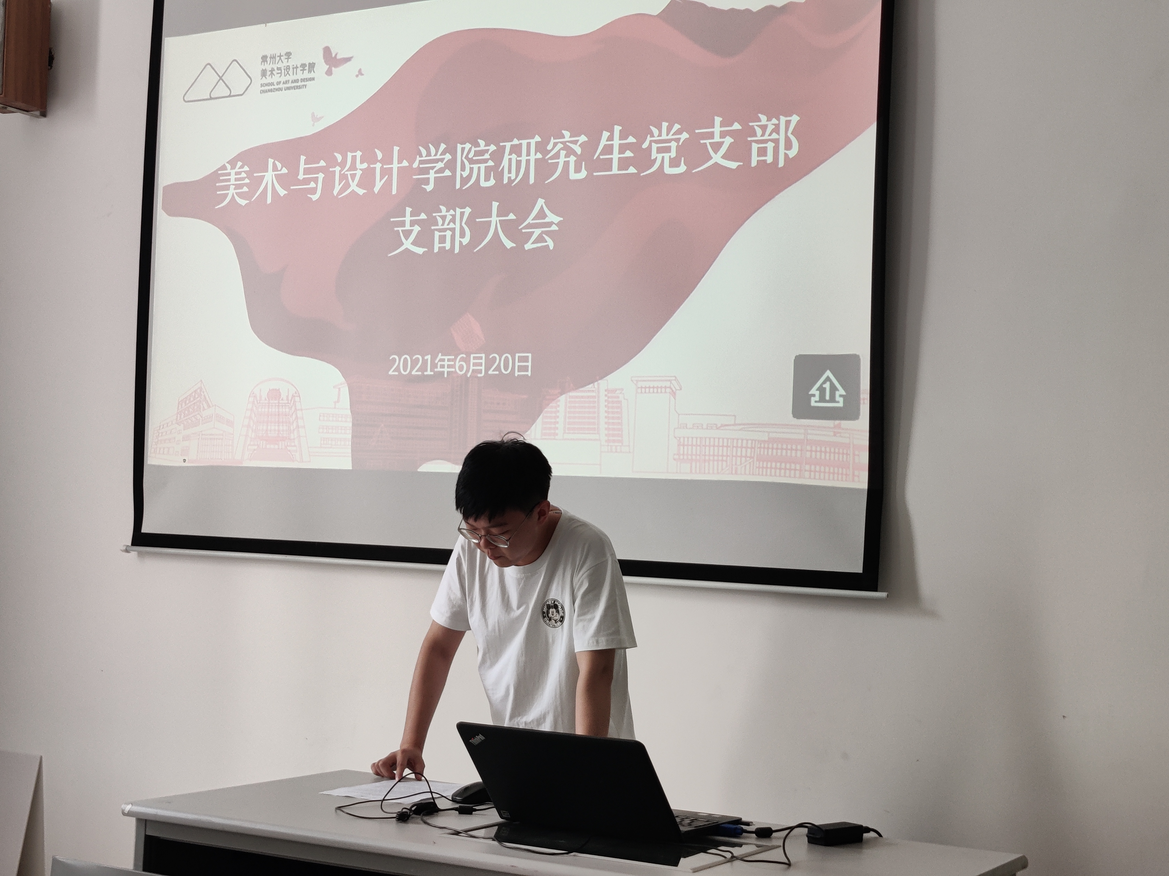 6月20日,美术与设计学院研究生党支部在西太湖校区立行楼212召开了2021年第二季度支部大会,本次会议由研究生党支部书记李磊主持,全体支部党员参加了本次会议。