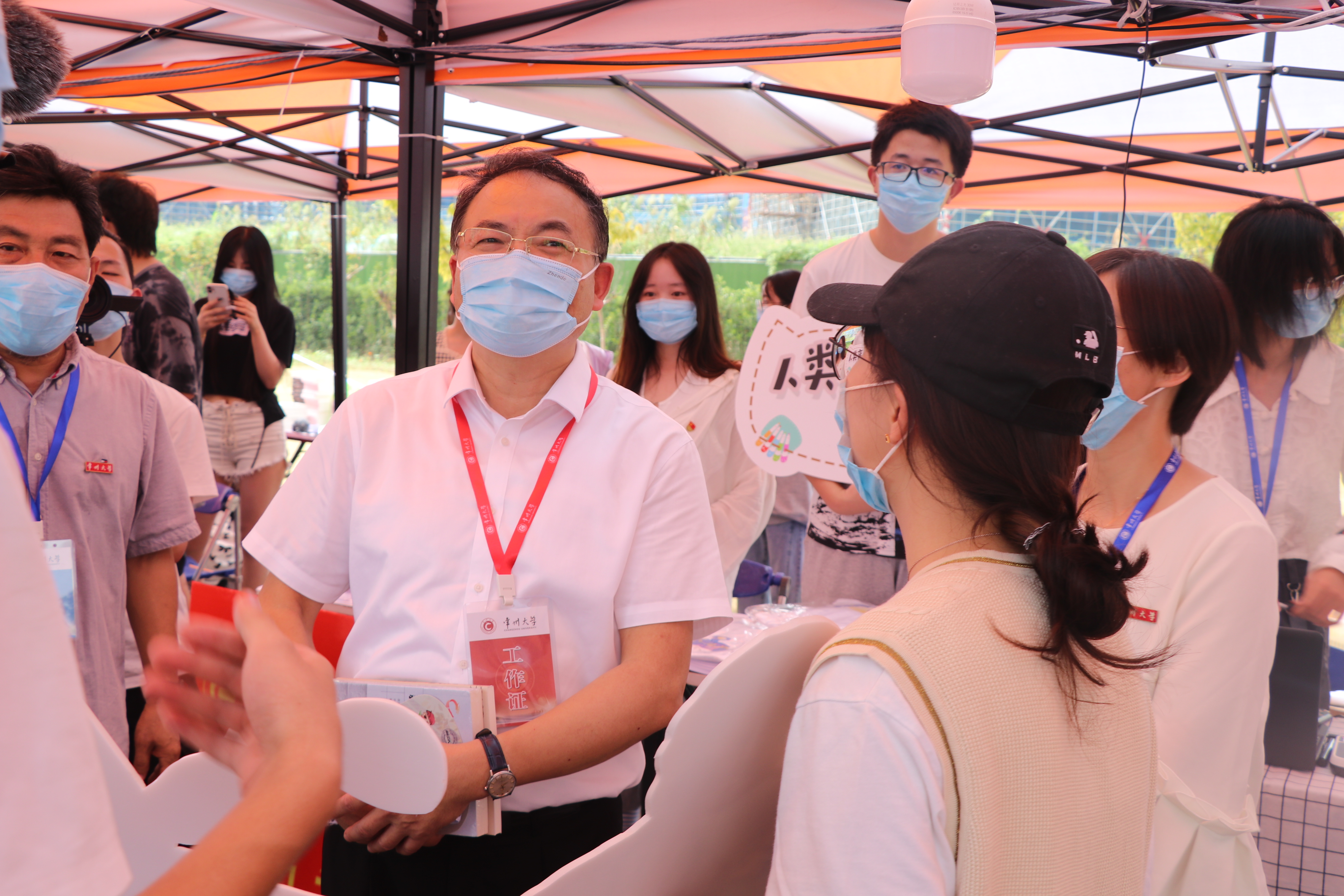 秋风送爽、丹桂飘香,2021年10月10日-10月11日常州大学美术与设计学院在西太湖校区迎来了来自全国各地的407名2021届的本科生和研究生。承载着家人的期盼、怀揣着青春的梦想,2021级的莘莘学子即将开始一段新的征程,续写常大学子的精彩故事。迎新期间,校党委书记陈群,校长蒋军成携相关职能部门亲临现场关切询问了迎新工作开展情况,走访慰问工作人员与学生志愿者,并与新生、家长们进行了细致交流。