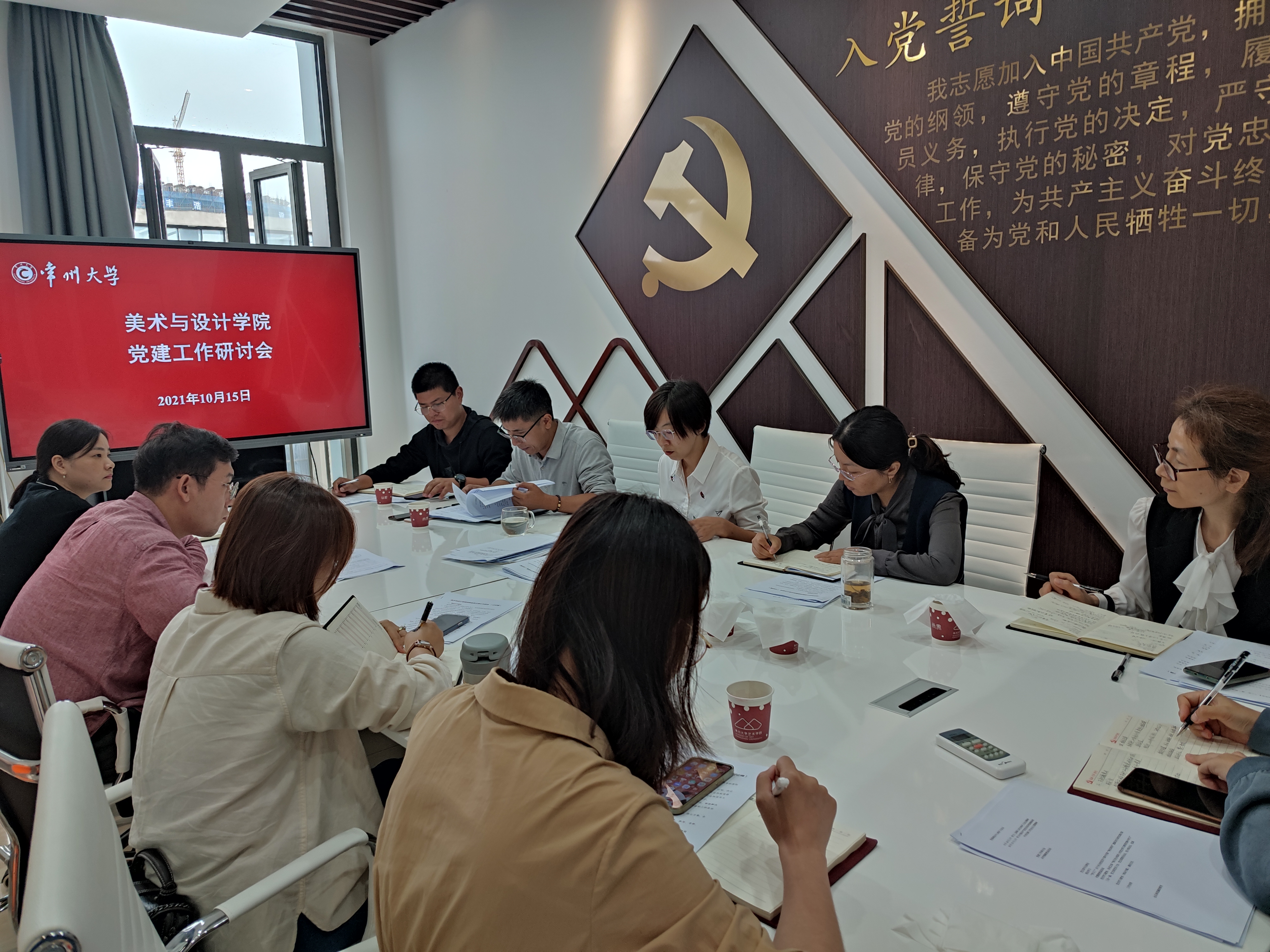 会议充分征求听取了各党委委员、支部书记对《美术与设计学院党委委员主要工作职责(讨论稿)》、《美术与设计学院党支部委员主要工作职责(讨论稿)》《关于全面推行“支部主题党日”活动制度的实施意见》等文件的意见建议。