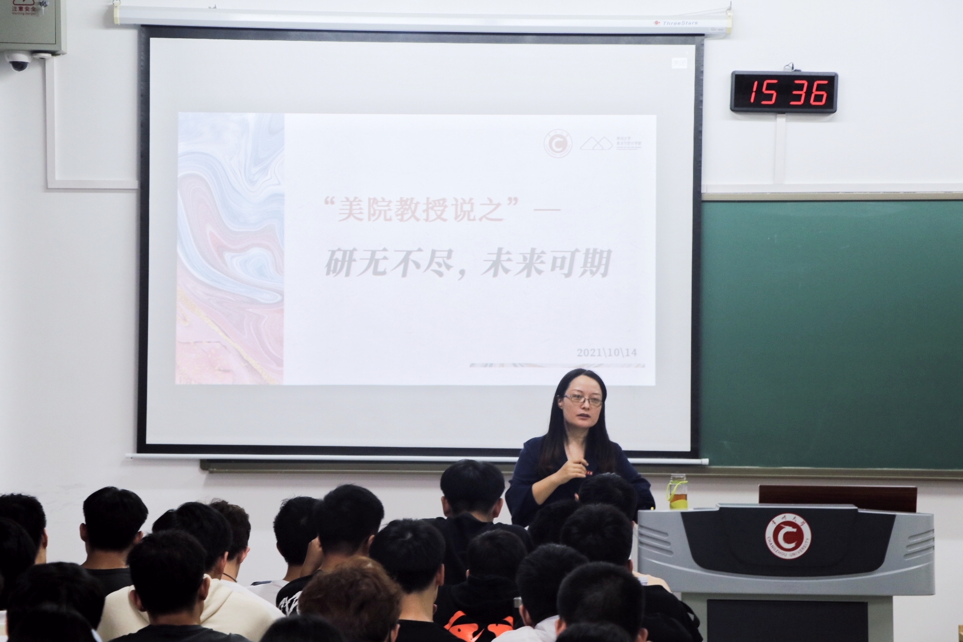 为了给有意向考研的学子提供更多的考研经验,坚定备考学子决心,增强他们的信心,美术与设计学院于10月14日下午在立德楼X217举办了首期“先锋讲堂之教授说”,以“研无不尽,未来可期”为主题的考研指导讲座。本次讲座由环境设计系主任石运达老师主持,环境设计系专业负责人,副教授刘苏文老师主讲,同时邀请了3名在读研究生为同学们答疑解惑。我院环境设计18级所有同学参加了本次讲座。