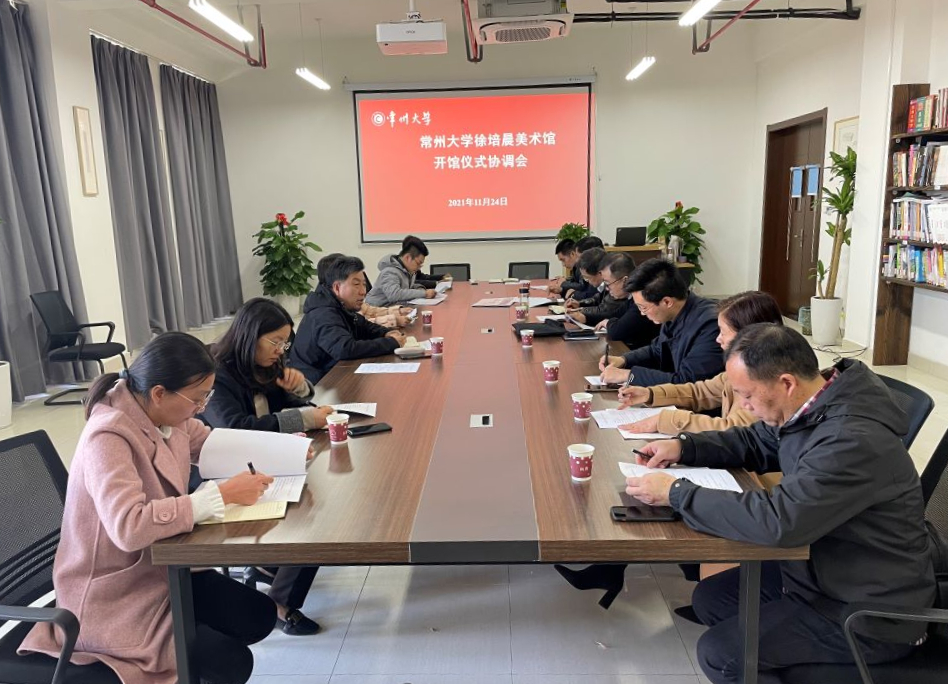11月24日下午,美术与设计学院在西太湖校区立行楼401会议室召开“常州大学徐培晨美术馆”开馆仪式协调会。党办校办、宣传部、国有资产管理处、采购与招标管理办公室、保卫处、西太湖校区管委会、档案馆、美术与设计学院党政负责人参加会议。