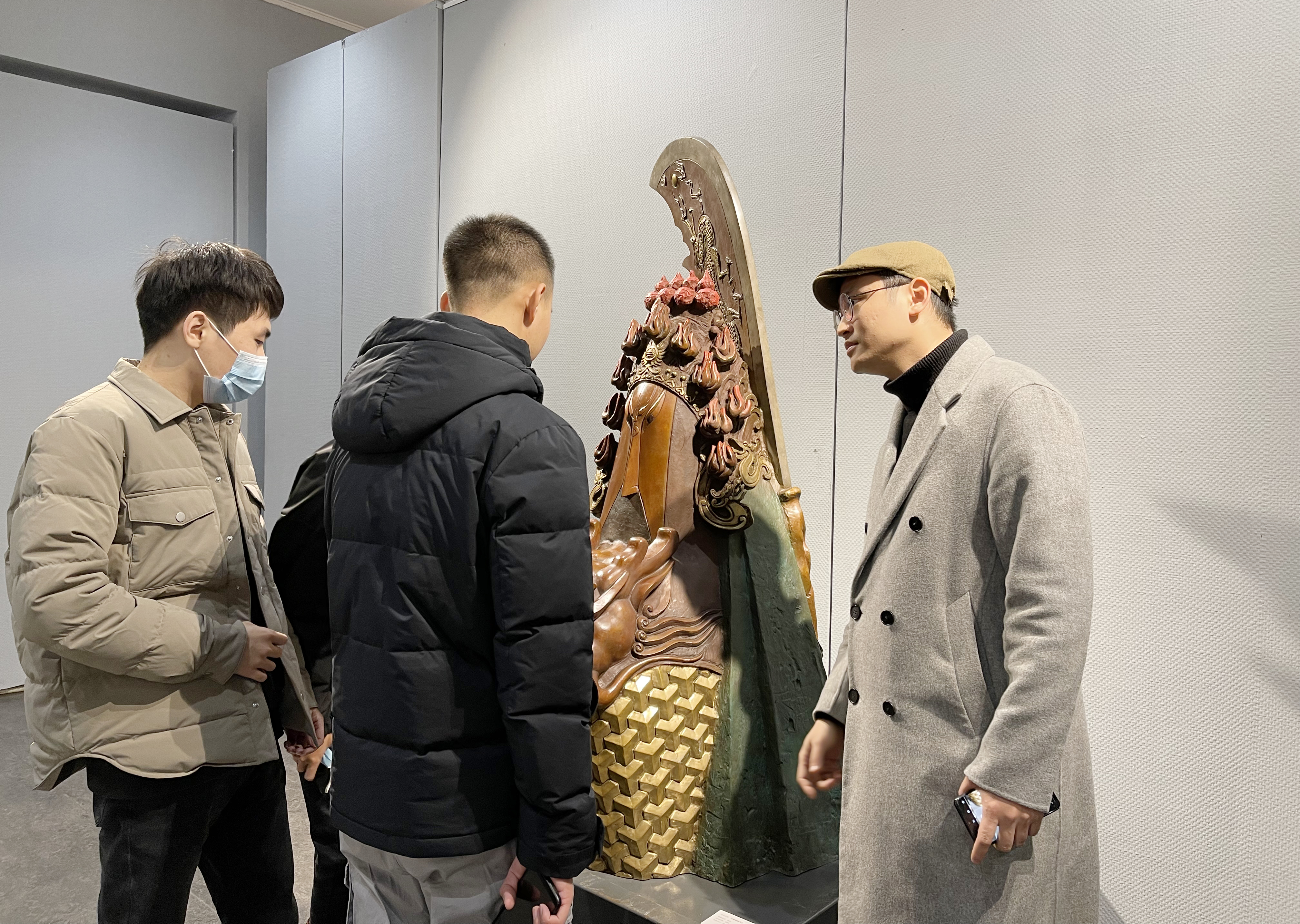 在参观的过程中,带队老师周老师给大家讲解了雕塑的故事,大家用心聆听、细致观察、热烈探讨每一个作品所传达出的艺术魅力以及其背后的红色故事,部分同学还向吴彤老师请教,受益匪浅。