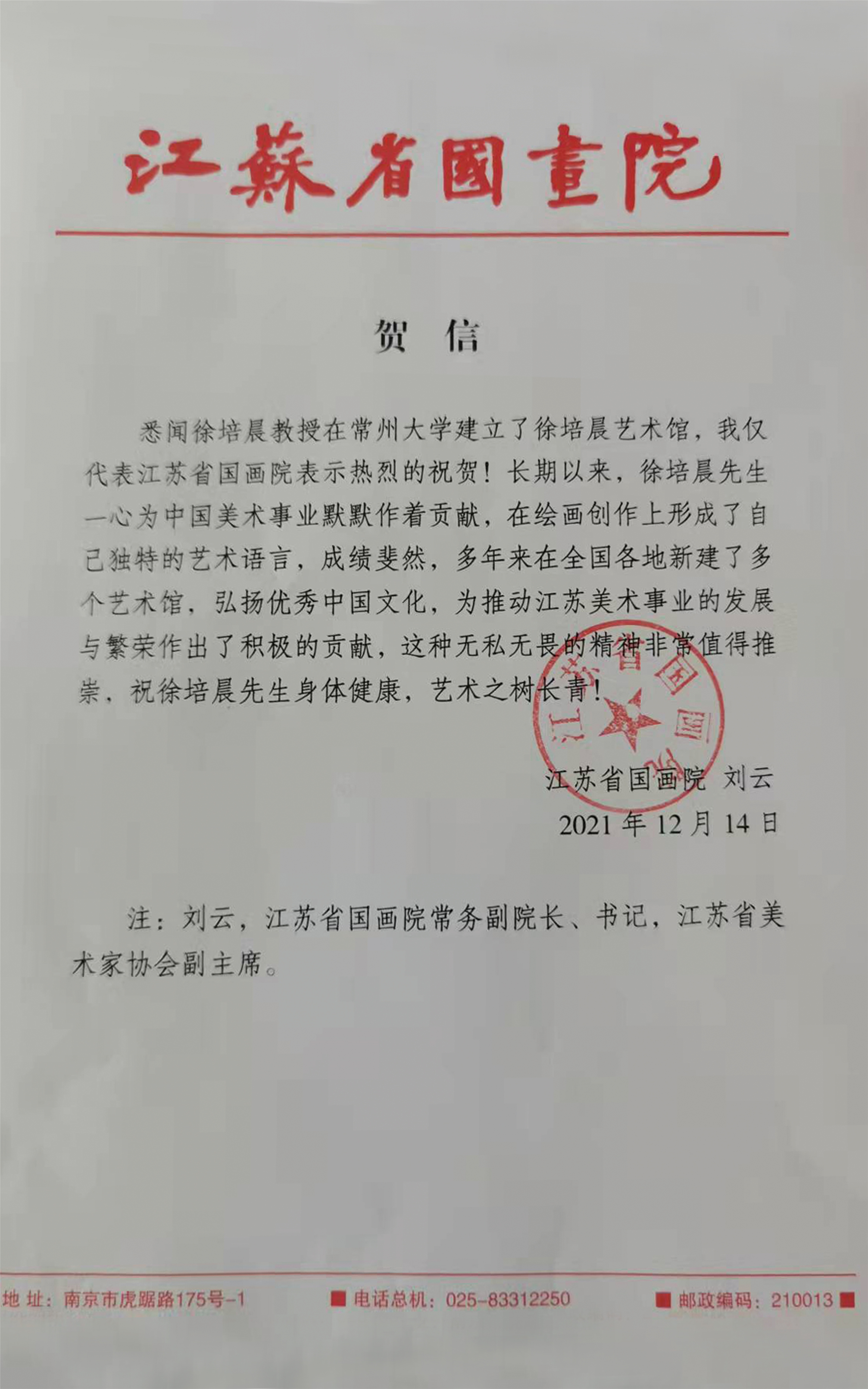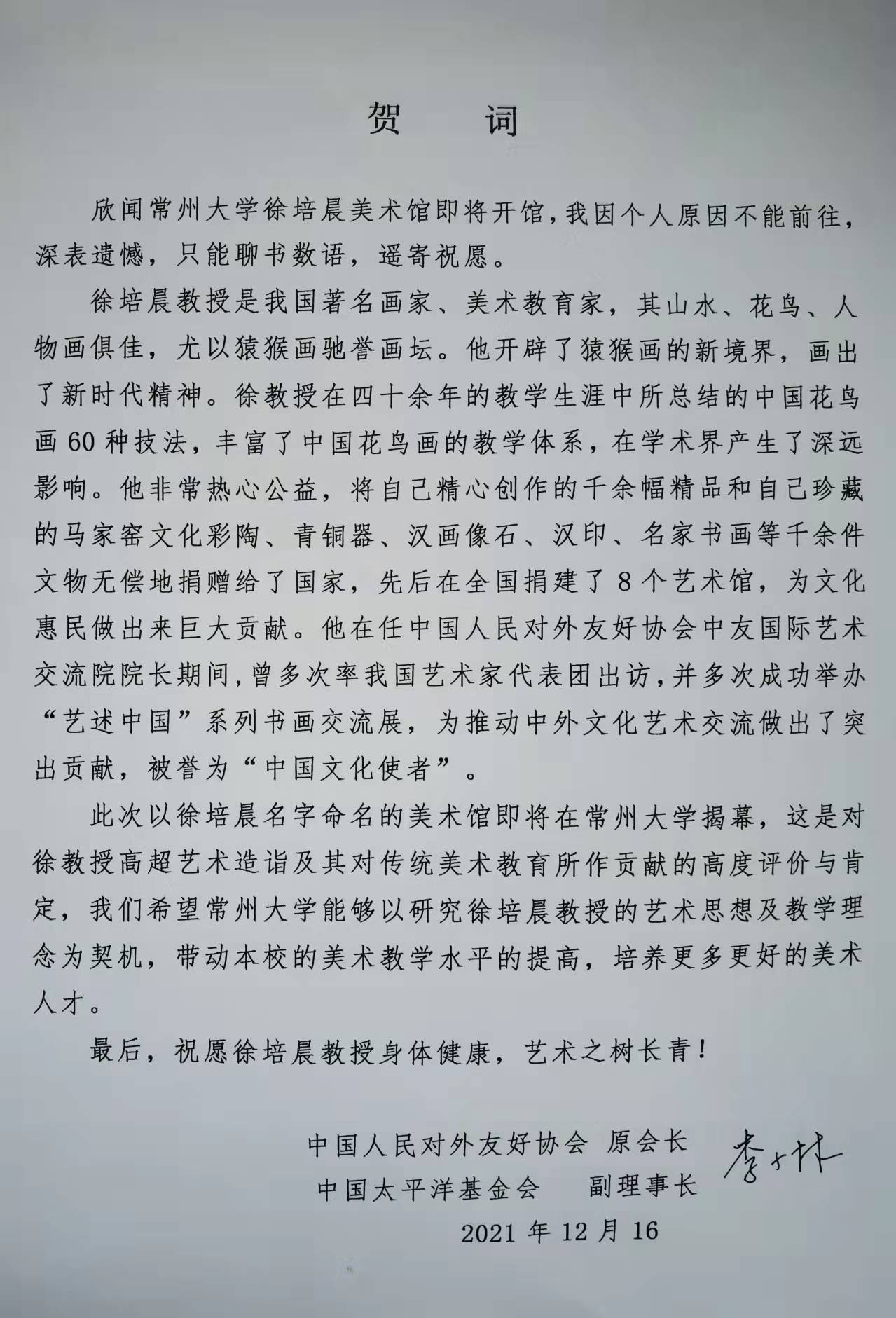 此次活动受到了国内外的高度重视,中国人民对外友好协会原会长李小林,江苏省国画院也发来贺信,对徐培晨美术馆的开馆表示祝贺。
