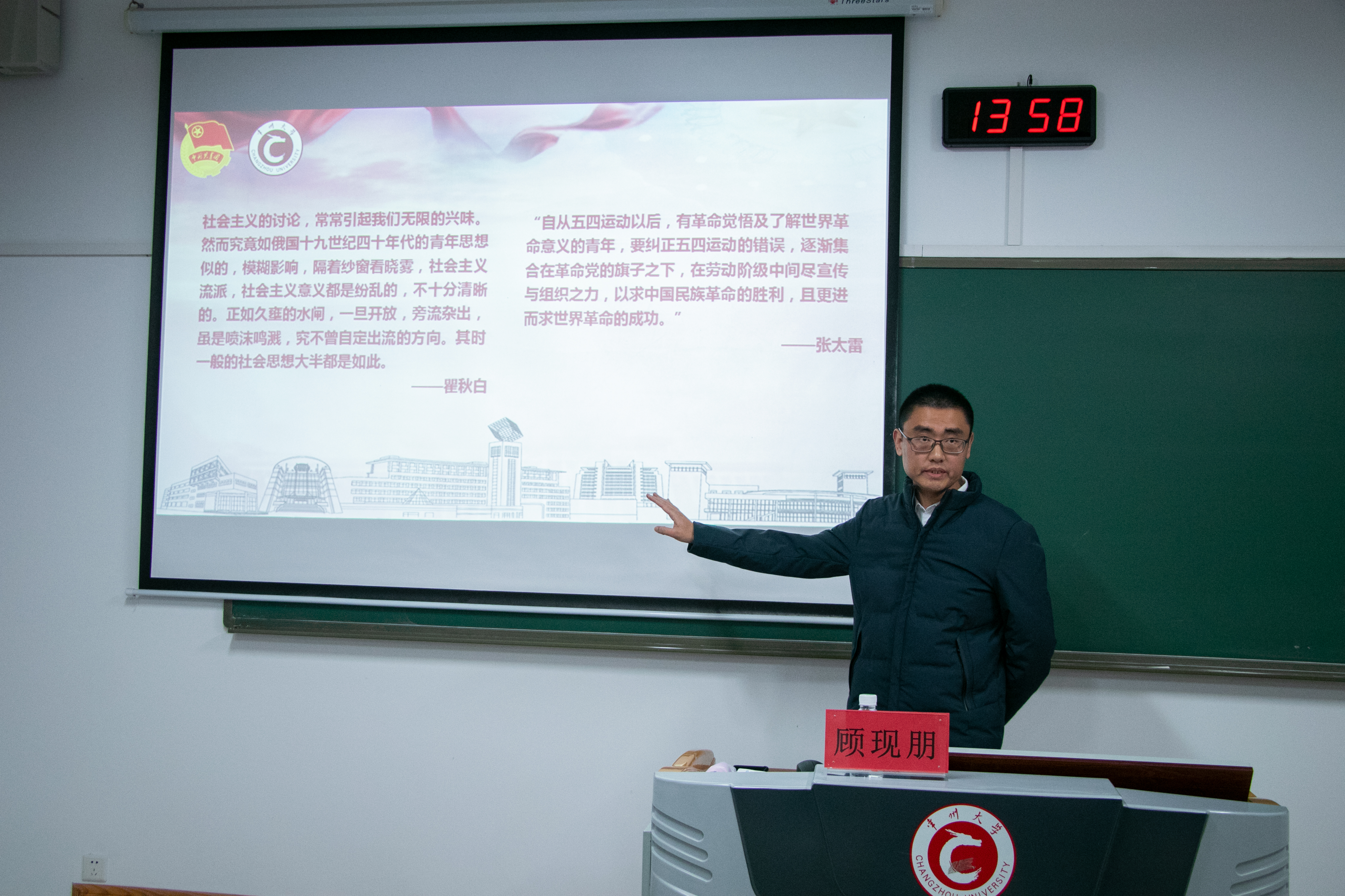 本次课程,顾现朋老师主要从三个方面展开。课程第一项,讲述百年五四与常州青年红色印记。习近平主席在中国共产党建立100周年讲话中为新青年寄语“未来属于青年”、“增强做中国人的志气、骨气、底气”、“无论过去,现在还是未来,中国青年始终是实现中华民族伟大复兴的先锋力量”。课程第二项,理解“四史”中最核心的中国共产党历史。党史、新中国史、改革开放史、社会主义发展史,正是革命先辈为我们带来的宝贵经验,才让中国经济快速发展,社会长期稳定。课程第三项,在党史中践行青春梦想。当前,世界多极化经济全球化在曲折中发展,各种国际势力相互激荡,我国也面临着各式问题和挑战。课程临近结尾,张雅文老师为同学们进行总结,要牢记党史教诲,做一个有担当的新青年。