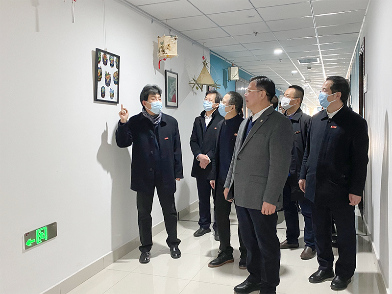 走访期间,校领导一行来到美术与设计学院,蒋军成详细了解了新学期美术与设计学院开学准备情况、师生返校疫情防控等各项工作,查看了教室和办公场所环境布置情况,并与学院管理部门教师进行了亲切交流。在交流中,蒋军成希望学院教职工能赓续前行,奋楫争先,全面贯彻党的十九大和十九届历次全会精神,以饱满的状态、旺盛的斗志投入到学院的建设中。鼓励学工们要做好学生管理工作,针对艺术类学生特点探索和创新学生工作方法,努力为社会培养创新型艺术人才。