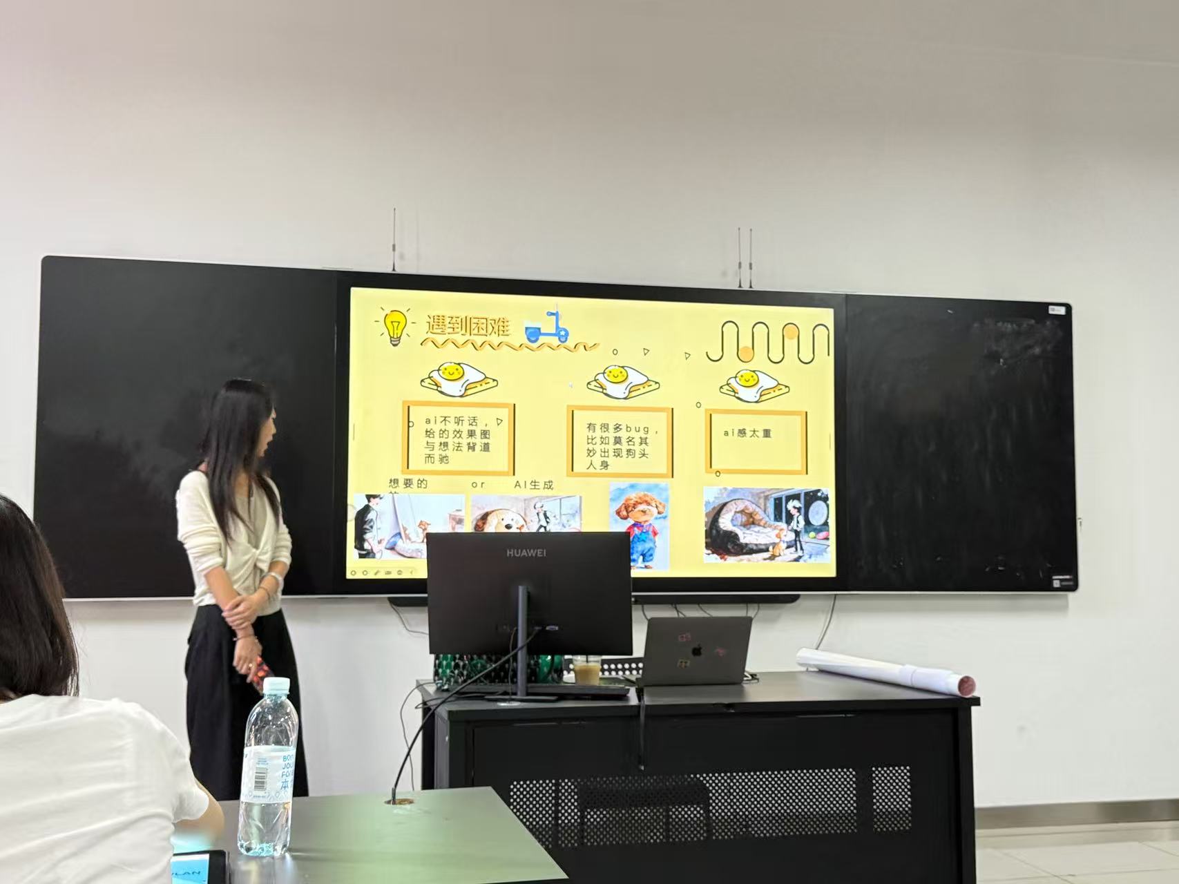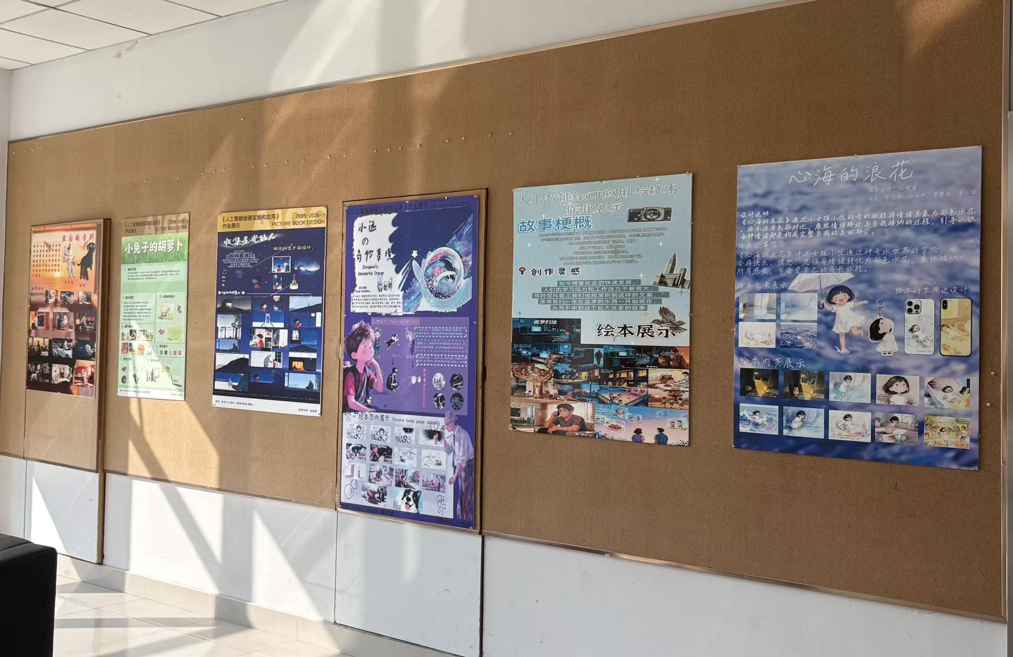 10月10日,我院美术 241、美术 242 班《人工智能绘画实践和应用》课程汇报展顺利开展。该课程由赵紫君老师主讲,以 “AI + 绘本设计” 为实践核心,以线下展览的形式,呈现融合技术与艺术的成果盛宴。此前各小组已通过 PPT 汇报,梳理了从主题构思、AI 工具选型、画面迭代优化到最终绘本排版的完整创作流程。同学们生动讲解如何用 AI 技术实现 “故事可视化”,有的小组以传统文化为主题,用 AI 还原古典纹样与东方美学氛围;有的聚焦现代生活,通过 AI 生成富有童趣的角色与场景,展现出对 “AI 辅助艺术创作” 的深度思考,赵老师针对各小组的创作逻辑与技术应用细节进行了点评与总结。