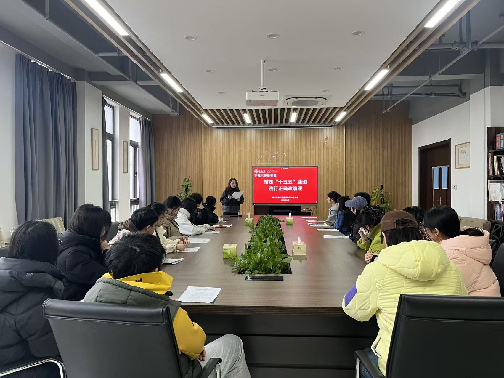 3 月18日,美术与设计学院学生第一党支部在立行楼401会议室开展“锚定‘十五五’蓝图 践行正确政绩观”专题党课。党课由学生党支部书记周扣娟主讲,支部全体党员参加。